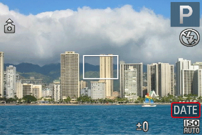 > button a few times to switch the screen display.5. When shooting with this setting, the date will be embedded in the image as shown below.