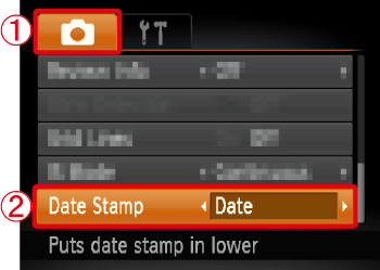 Operate the <directional button> to set [Date Stamp] to [Date] or [Date & Time].After making these settings, press the <