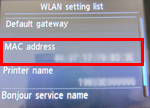 When "WLAN setting list" is displayed, confirm the MAC address using the