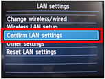 button to select "Confirm LAN settings" then touch the OK button.