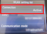 When "WLAN setting list" is displayed, confirm that "Active" is displayed in "Connection".