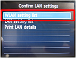 button to select "WLAN setting list" then touch the OK button.