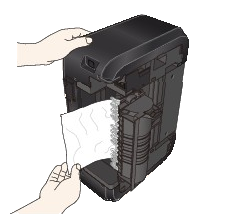 - If the paper is rolled up and it is difficult to remove, grasp the edges of the paper, then remove the jammed paper.