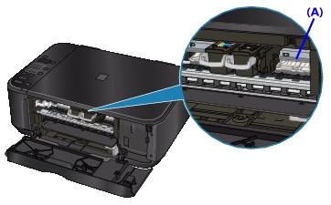 If the FINE cartridge holder hangs over the paper, move the FINE cartridge holder to the right edge or the left edge whichever is easier to remove the paper.