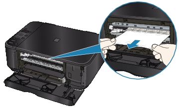 If you can see the jammed paper at the paper output slot, remove the paper following the procedure below.