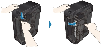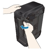 - If you cannot remove the jammed paper from the transport unit, close the transport unit, stand the machine upright, then open the paper output cover to remove the paper.