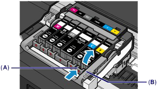 Push the tab (A) and lift the ink tank to remove.