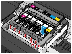 (Push) on the ink tank until the ink tank snaps firmly into place.