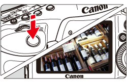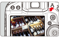 >(Live View shooting) button. The Live View image will appear on the LCD monitor.