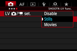 For details on how to change settings to enable Live View shooting, please refer to the related information.