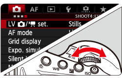 7. Turn the <Quick Control Dial> to select [Stills], then press the <SET> button.