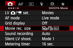 8. Turn the <Quick Control Dial> to select [Movie rec. sixe], then press the <SET> button.