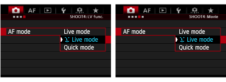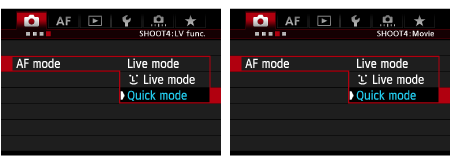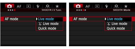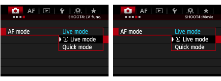 ) is set:The image sensor is used to focus. Although AF is possible with the Live View image displayed, the AF operation will take longer than with Quick mode. Also, achieving focus may be more difficult than with Quick mode.