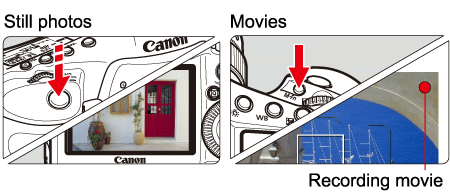 Please note that some shooting procedures differ between still photos and movies. To shoot still photos, please refer to the instructions for still photos, and to shoot movies, please refer to the instructions for movies.