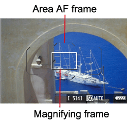 - In other modes, the AF point will be displayed as a small frame.
