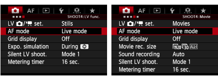 Changing the AF Mode to Use the Live View Function to Shoot Still Photos and Movies (EOS-1D X)