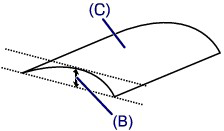 - Depending on the media type, the paper may be smudged or may not be fed properly even if it is not curled inward. In such cases, follow the procedure described below to curl the paper outward within 0.1 inch / 3 mm (B) in height before printing. This may improve the print result.