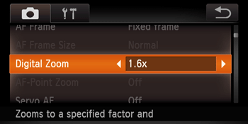 - Set the [Digital Zoom] to either [1.6x] or [2.0x]