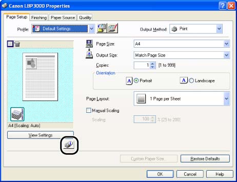 Start up by clicking the button to display the Printer Status Window in locations such as in the [Page Setup] sheet in the [Printer Properties] dialog box.