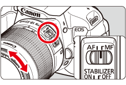 3. Once you have proceeded up to Step 2 of Part I, set the lens focus mode switch to <MF>.