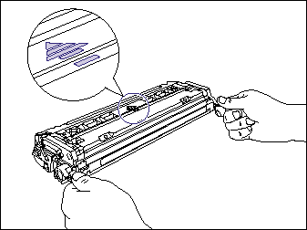 7. Hold the toner cartridge properly with the arrowed side facing up as shown in the figure.
