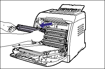 Holding the toner cartridge with your both hands firmly, pull it out so that you do not touch the transfer belt of the ETB unit.