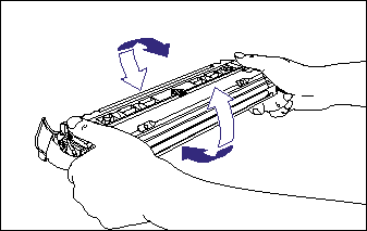 b. Be sure to shake the toner cartridge gently. If you do not shake the cartridge gently, toner may spill out.