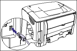 1. Connect the B-type (square) end of the USB cable to the USB connector on the rear side of the printer.