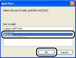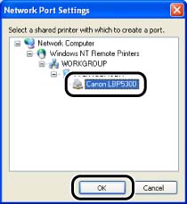 9. Select the icon for the shared printer in the print server, then click [OK].