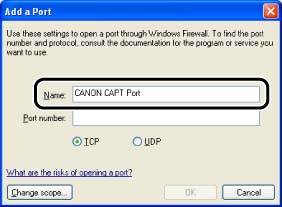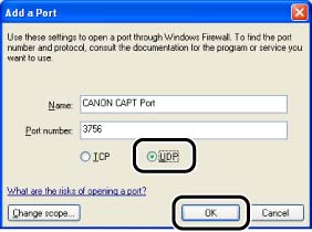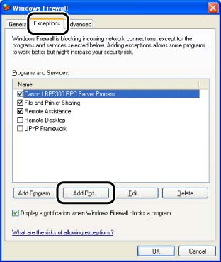 19. If you are using Windows XP Service Pack 2 or another operating system equipped with Windows Firewall, it is recommended that you see the following procedure and specify the settings so that the port is opened through Windows Firewall.