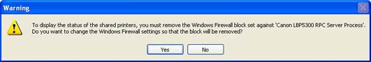 If you are using Windows XP Service Pack 2 or another operating system equipped with Windows Firewall, the following screen is displayed. Specify whether to configure Windows Firewall to unblock communication with the client computers when sharing the printer on a network.
