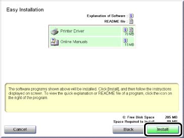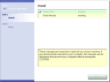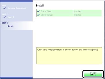 [Easy Installation] allows you to install the printer driver and the instruction manuals simultaneously. If you do not install the manuals, select [Custom Installation].