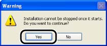 15. The message <Installation cannot be stopped once it starts. Do you want to continue?> appears. Click [Yes].