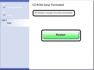 18. Select the [Restart Computer Now (Recommended)] check box, then click [Restart].
