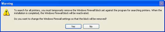 If you want to clear the block and detect the printers in which the IP address has not been set yet, click [Yes].
