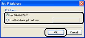 - Enter the IP address of the printer in the [Set IP Address] dialog box, then click [OK].