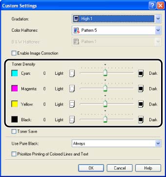 3. Adjust the toner density by dragging the [Toner Density] slider of each color from side to side.