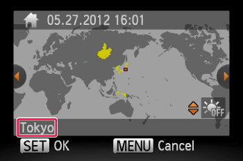 Operate the < directional buttons > left and right to select the home time zone ([Tokyo] is selected in the above image).