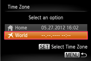 Operate the < directional buttons > to set [Time Zone] to [World] (