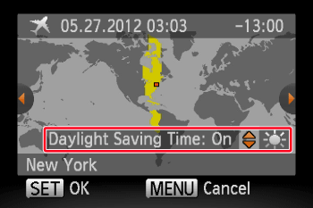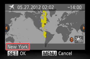 Operate the < directional buttons > left and right to select the world time zone ([New York] is selected in the above image).