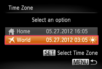 ) appears on the screen, [Time Zone] is set to the world time zone.NOTE