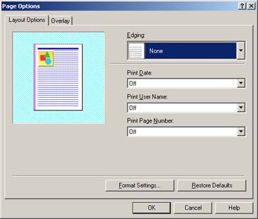 This dialog box allows you to specify borders, date, and page numbers, etc. to be printed on the printouts.