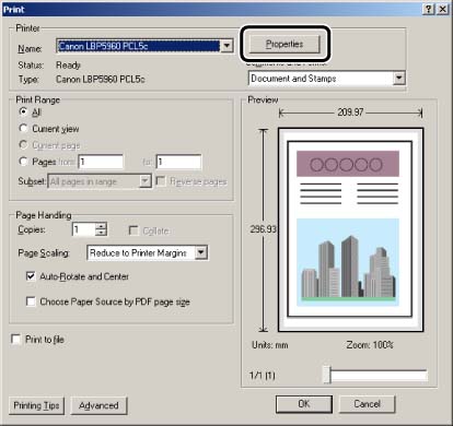 b. The procedure for displaying the [Document Properties] dialog box may differ depending on the application you are using.