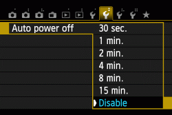 >.Please refer to the Instruction manual supplied with your camera for more information about the Auto power off settings.