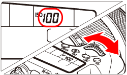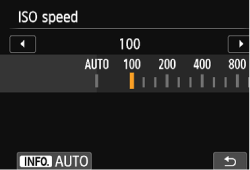 If the ISO speed is set to [ A ] (Auto), the actual ISO speed to be set will be displayed when you press the shutter button halfway.