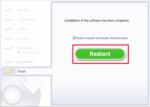If you do not wish to restart at this point, make sure to restart before using ImageBrowser EX.
