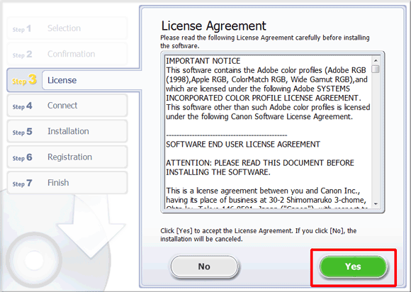 11. Click [Yes] to accept the License Agreement.