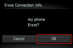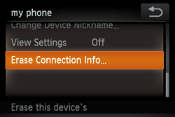 When you have registered multiple smartphones to the camera, the [Edit a Device] screen will be displayed if connection settings are erased. In this case, touch the