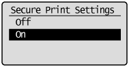 | <Off> | Secure Printing is not available. |