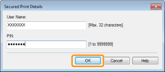 6. Specify the desired settings for the secure print job and click [OK].